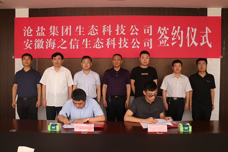 6月19日,滄鹽集團(tuán)生態(tài)科技公司與安徽海之信生態(tài)科技公司舉行合作簽約儀式,生態(tài)科技公司經(jīng)理劉佳峰與安徽海之信生態(tài)科技有限公司董事長李巖分別代表雙方簽署合作意向書和供銷合同。滄鹽集團(tuán)領(lǐng)導(dǎo)劉建軍、文興峰、李蜻海及相關(guān)部門負(fù)責(zé)人和合作方代表出席簽約儀式。