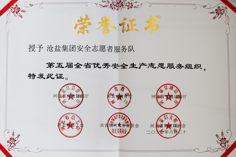 近日,集團(tuán)公司榮獲2019年度省“優(yōu)秀安全生產(chǎn)志愿服務(wù)組織”和滄州市“安全生產(chǎn)先進(jìn)單位”榮譽(yù)稱號,這是公司連續(xù)第三年獲得這兩項(xiàng)榮譽(yù)。