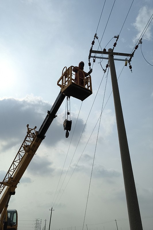 該段供電線路屬于變電二站5#線路,擔(dān)負(fù)著溴素三廠及長蘆黃驊鹽業(yè)有限公司滄南泵站的供電任務(wù)。原線路使用50平方毫米裸鋁導(dǎo)線,導(dǎo)線線徑偏細(xì)、供電能力不足,已無法滿足日益增長的用電需求,在用電高峰時段存在線路超負(fù)荷等問題,且由于年限久遠(yuǎn),老化嚴(yán)重,線損高,易出現(xiàn)故障隱患等問題。為保障正常的生產(chǎn)生活用電,電力公司加強(qiáng)組織籌備,調(diào)配人力物力對該線路進(jìn)行升級改造。于2月28日開始作業(yè),用時兩天完成了線路改造任務(wù),并恢復(fù)正常供電。