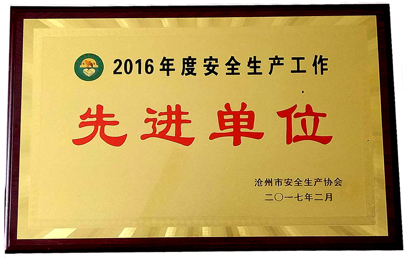 日前,公司被滄州市安全生產(chǎn)協(xié)會(huì)評(píng)為“2016年度安全生產(chǎn)工作先進(jìn)單位”。